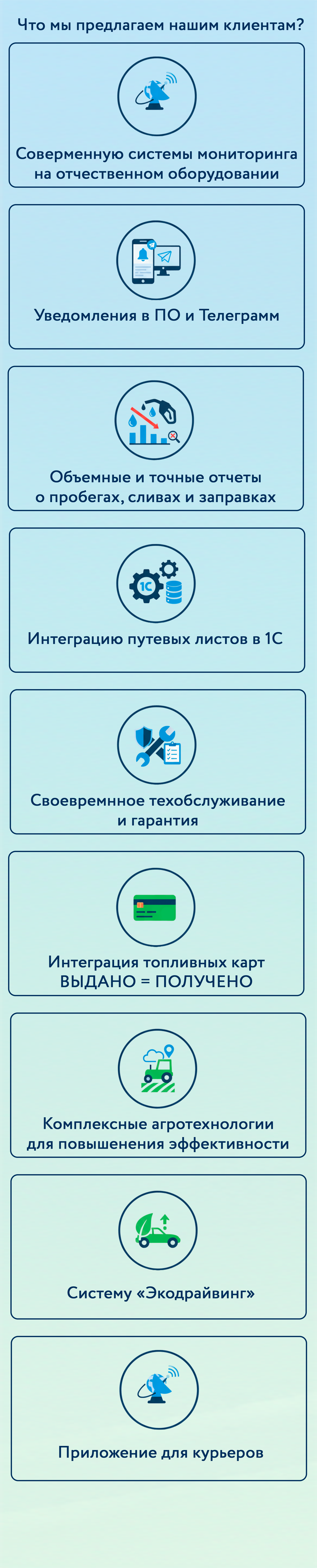 Если у вас уже есть ТС на которых стоят навигационные терминалы и в данный момент они работают, то приобретать ничего не нужно. Мы сделаем всё сами!