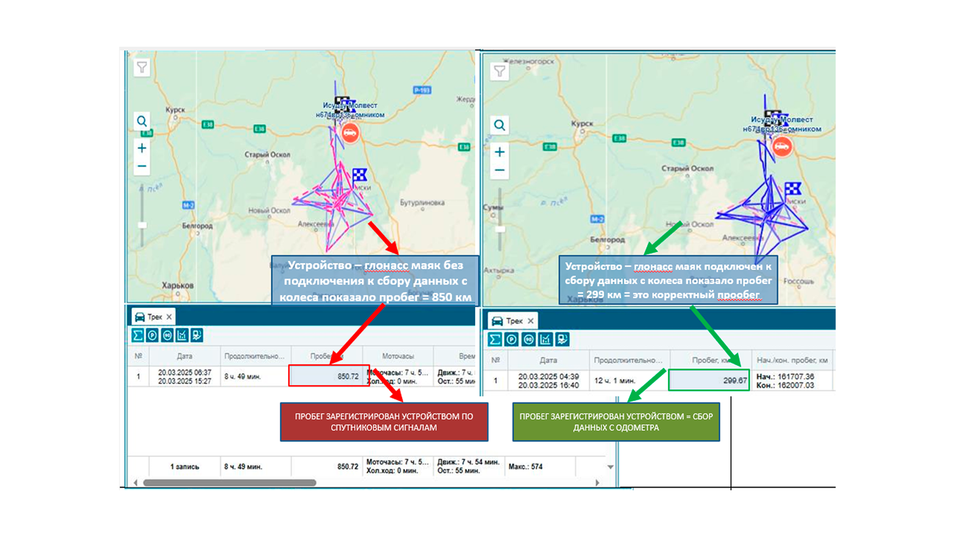 Подсчет пробега в момент работы рэб